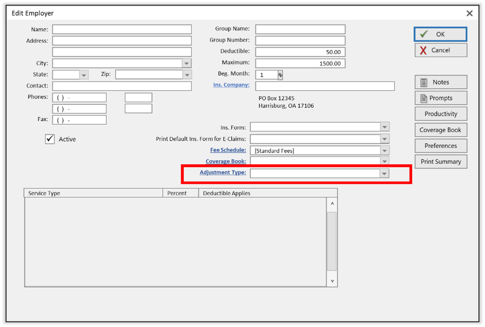 Question: We are in-network with insurance. When I set up an Employer, do I need to use the Adjustment Type drop down to pick an Adjustment Type? If yes, which one?