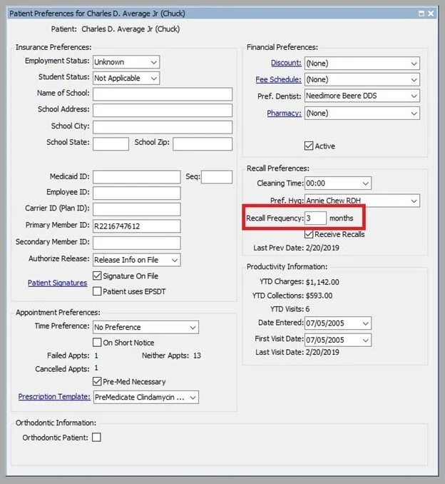 Recall Frequency 3: Patient is expected to return to your office for recall every 3 months.